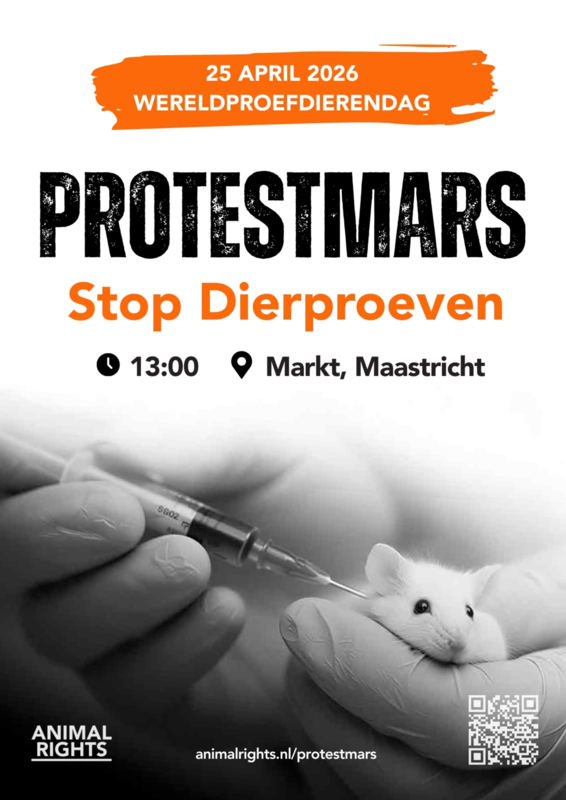 Bestel hier al je gratis promotiematerialen voor de Protestmars Stop Dierproeven op 25 april 2026 in Maastricht!